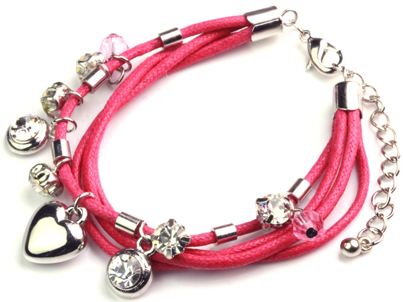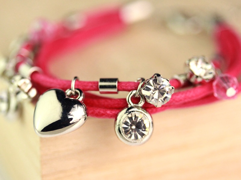 四連コードチャームブレスレット/ピンク