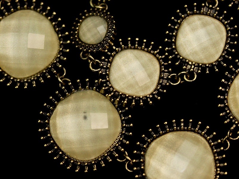 カットが入ったカラービーズの美しいビジューネックレス。 カラー:メタリックゴールド&アイボリー |