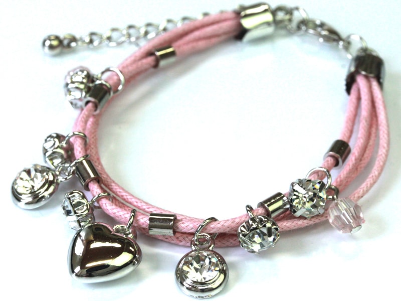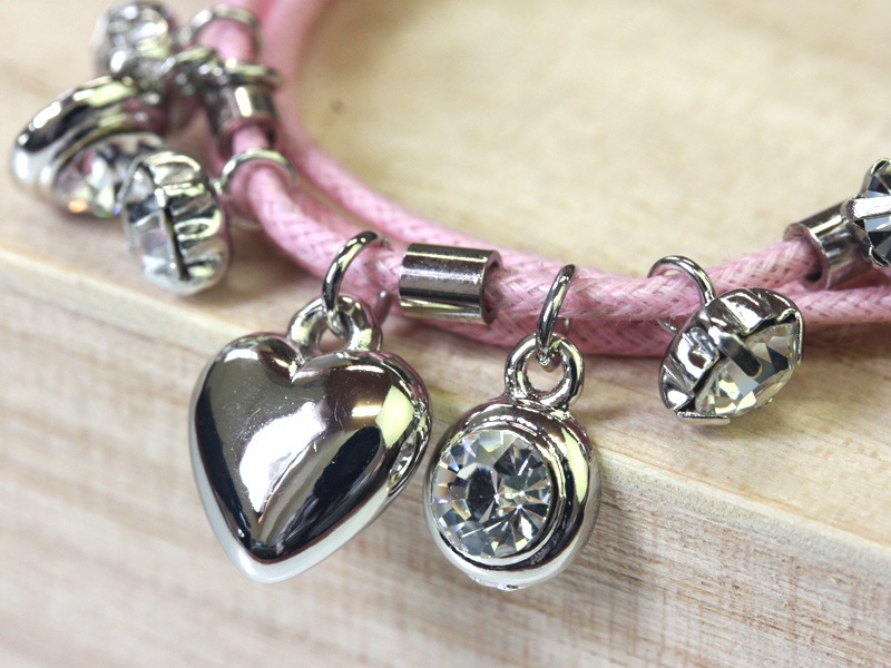 四連コードチャームブレスレット/ベビーピンク