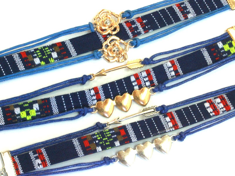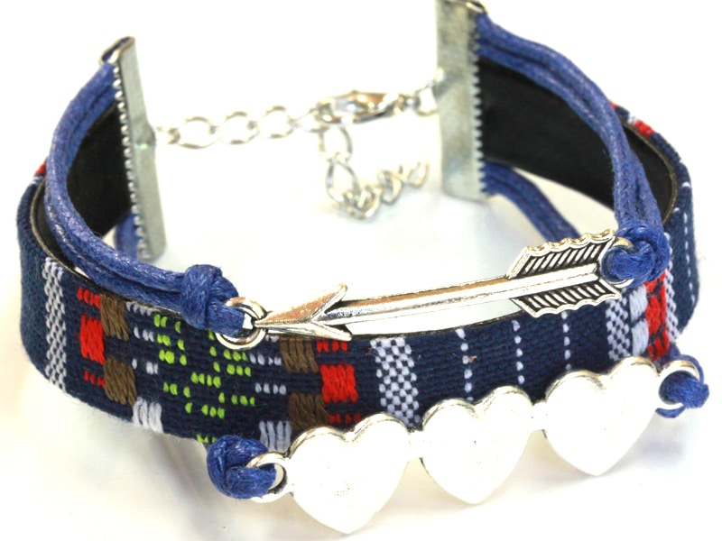 平織チャームブレスレット/ブルー/ハート・シルバー/1本