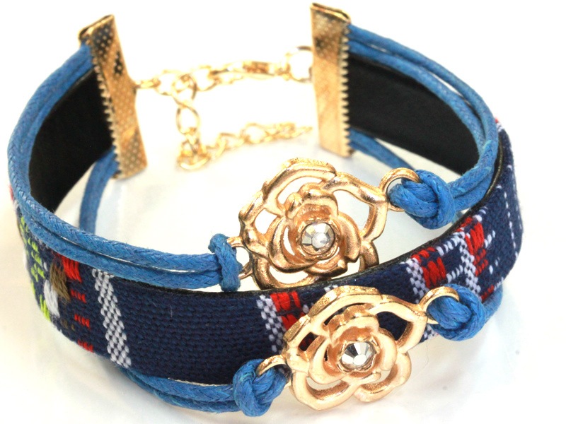 平織チャームブレスレット/ブルー/フラワー・ゴールド/1本