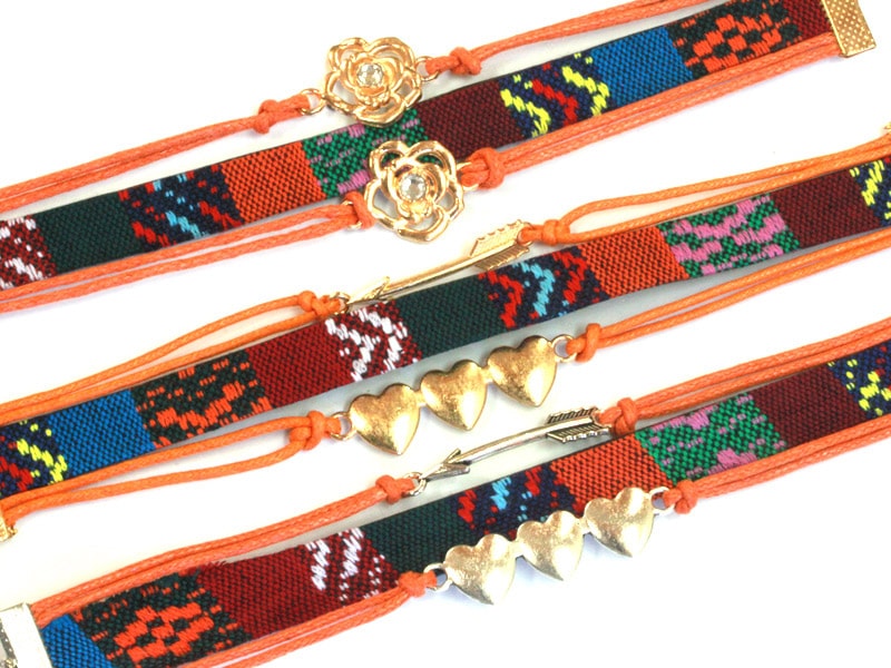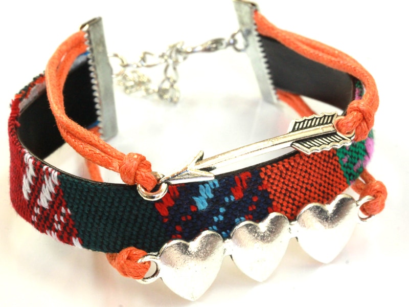 平織チャームブレスレット/オレンジ/ハート・シルバー/1本
