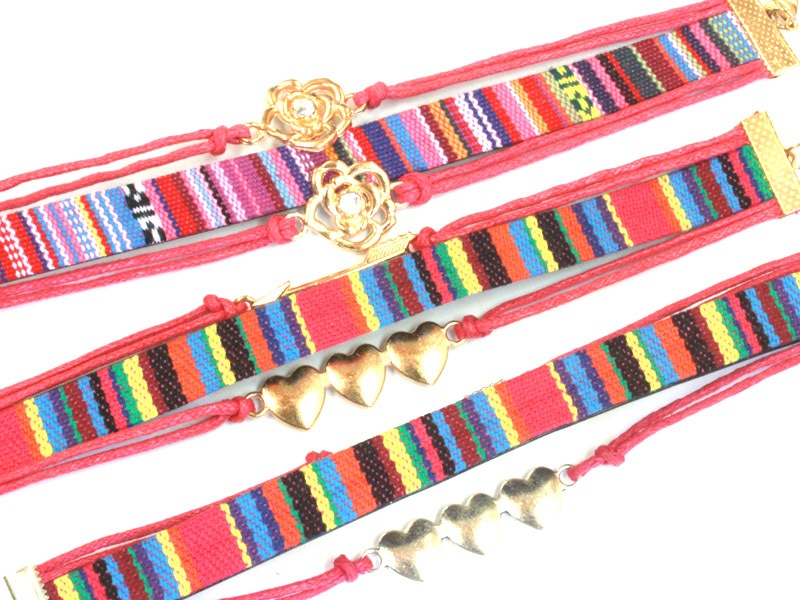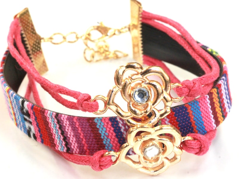 平織チャームブレスレット/ピンク/フラワー・ゴールド/1本