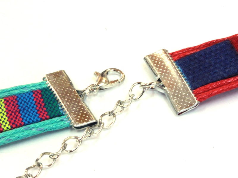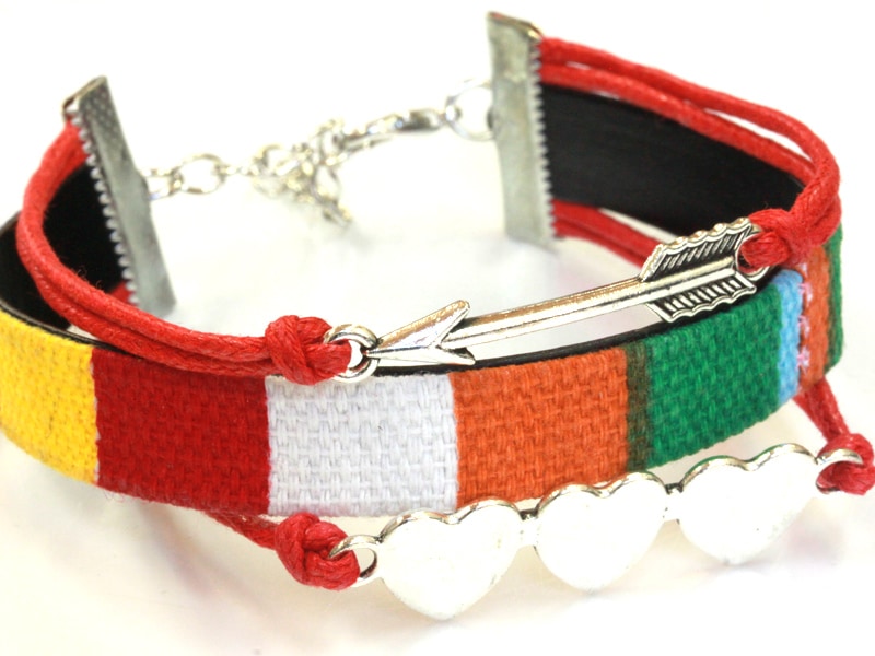 平織チャームブレスレット/レッド/ハート・シルバー/1本