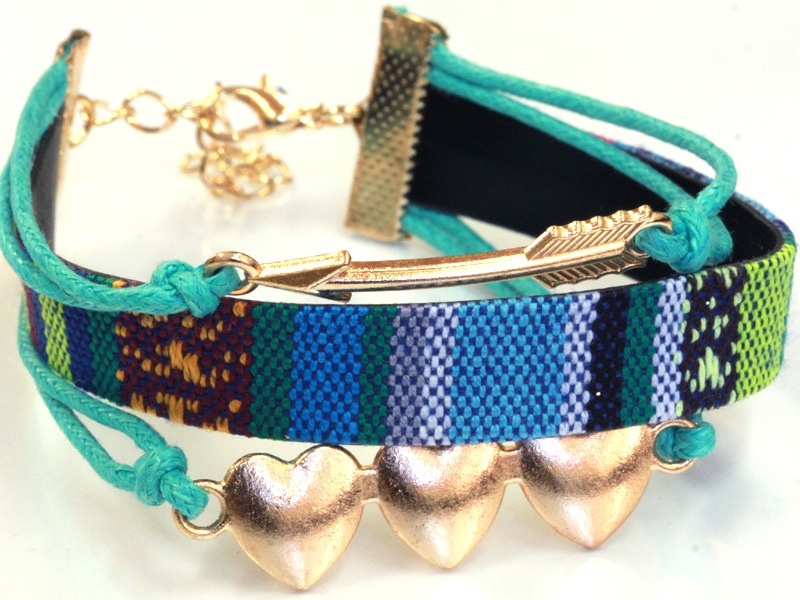 平織チャームブレスレット/グリーン/ハート・ゴールド/1本