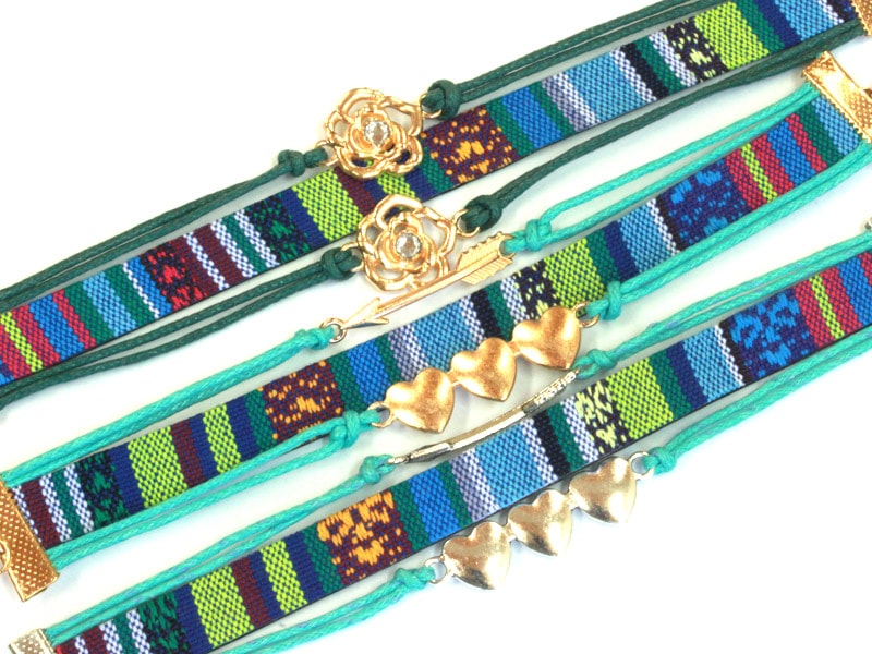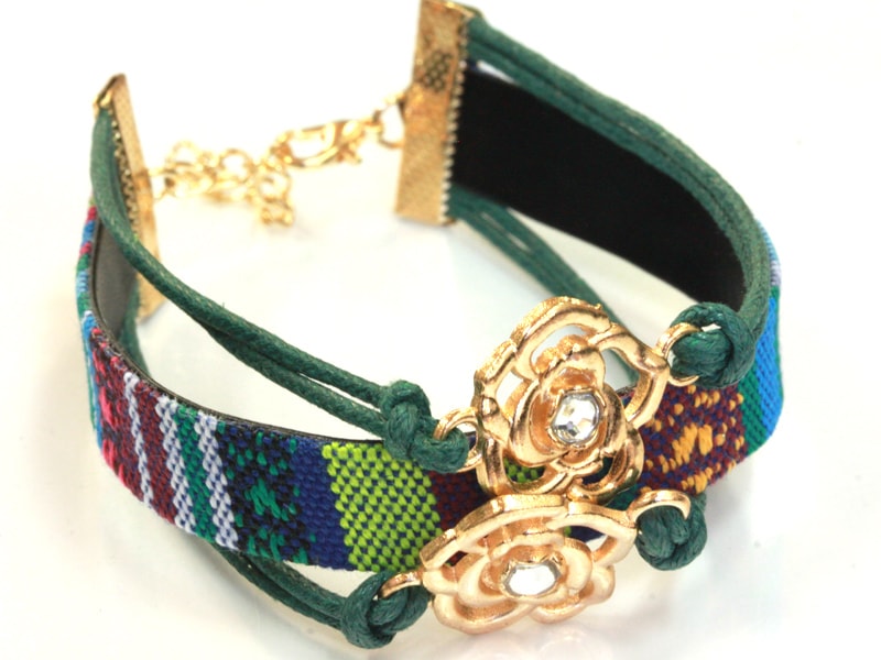 平織チャームブレスレット/グリーン/フラワー・ゴールド/1本