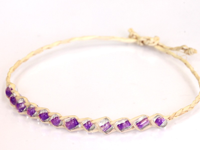 ラフィアミサンガブレスレット/パープル(感受性・独創性)/1本